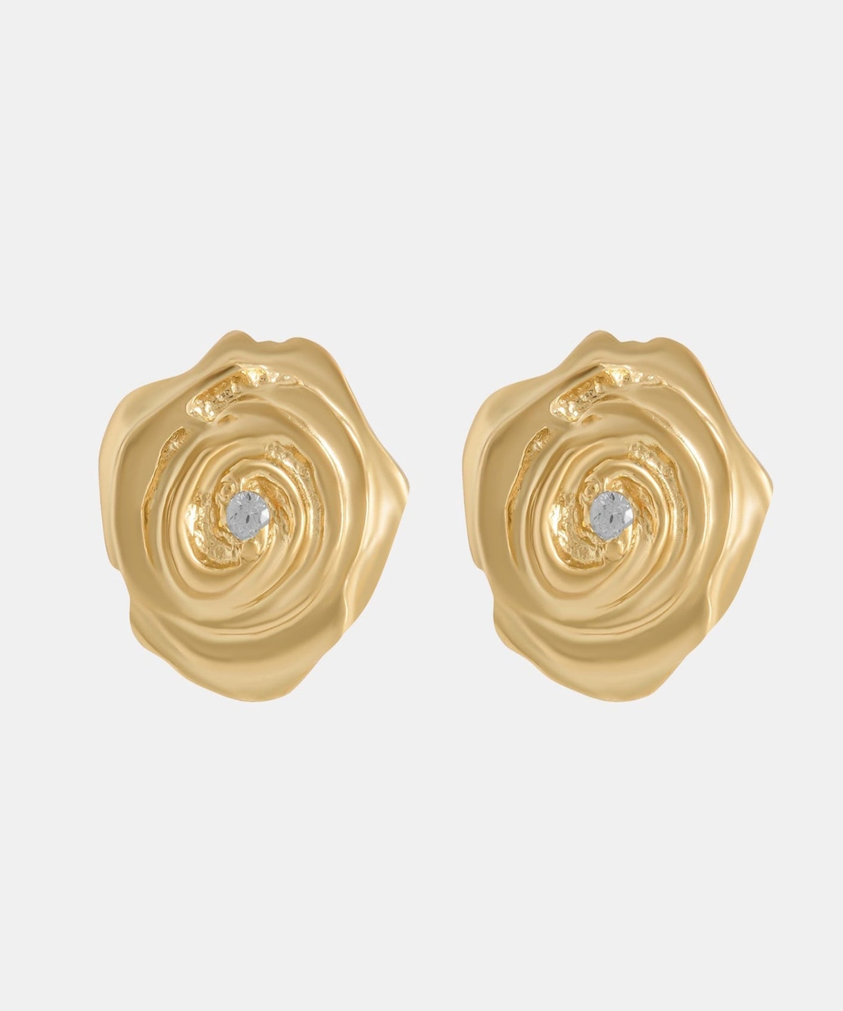 Kolczyki Cardinal de Richelieu mini Diamant to biżuteria o rzeźbiarskiej formie, inspirowana naturalnym pięknem i zmysłową miękkością złota. Wykonane z 14-karatowego złota, zachwycają organicznym kształtem przypominającym wirującą strukturę róży. W centrum każdego kolczyka osadzony jest diament o masie 0,01 karata, który subtelnie odbija światło, dodając całości delikatnego blasku.