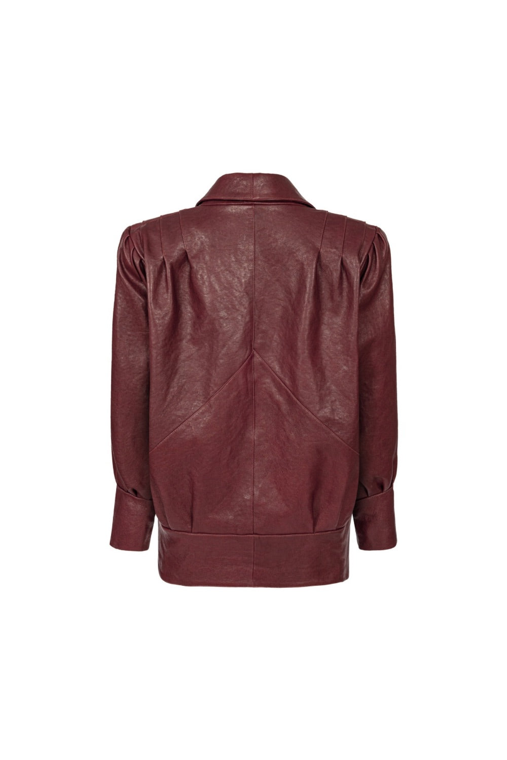 A sleek silhouette with ruched, elevated shoulders, slanted pockets, and silver detailing, finished with a thick belt. This design redefines 80s runway style with a modern edge.