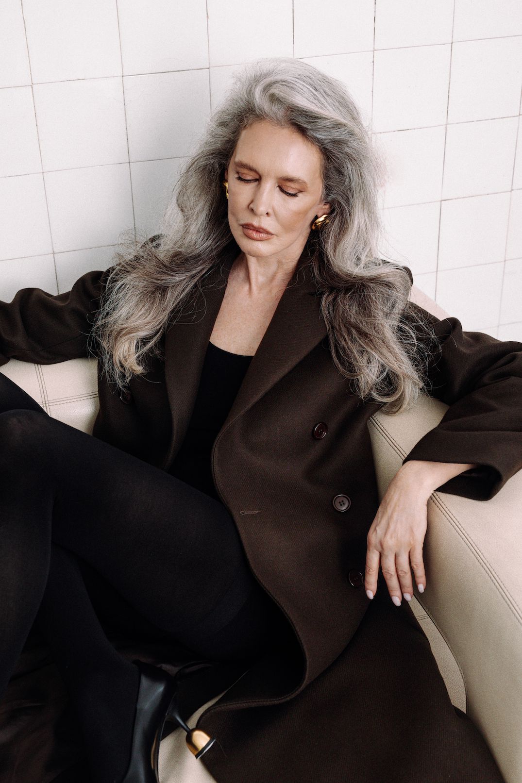 JALOUSIE straight coat in chocolate is a long, double-breasted coat with a clean, streamlined silhouette that exudes subtle elegance and timeless charm. Its minimalist cut is complemented by classic lapels and carefully placed buttons, highlighting its refined form. The deep chocolate hue adds a touch of sophistication, making it a perfect wardrobe piece for the autumn-winter season.