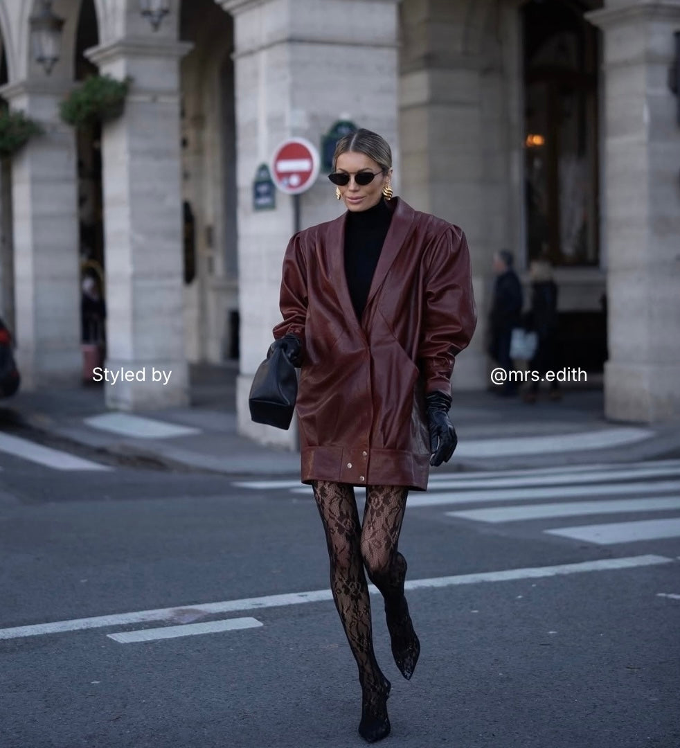 A sleek silhouette with ruched, elevated shoulders, slanted pockets, and silver detailing, finished with a thick belt. This design redefines 80s runway style with a modern edge.